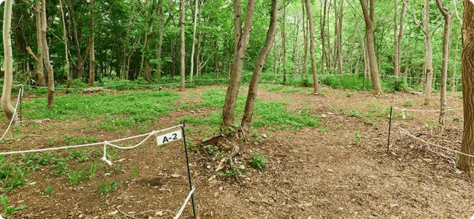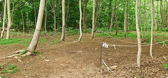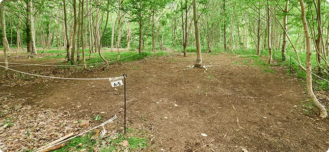 Aエリアには、BBQコーナー6名利用×5コーナーと、ペットNG・車輌乗入NGの4サイト。Bエリアには、ペットOK・車輌乗入NGの4サイト。Cエリアには、ペットOK・車輌乗入OKの4サイトと、どのサイトも100㎡程度の広さで開放感のある自然を満喫いただけます。